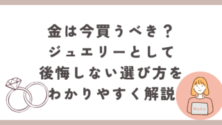 ネックレスやリングなど、金のジュエリーが気になっているけど「今買うべきなのか」で迷っていませんか?最近は価格が上がっていると聞くことも多く、タイミングに悩む方も多いと思います。この記事では、ジュエリーとして金を選ぶ場合の考え方と、後悔しない...
