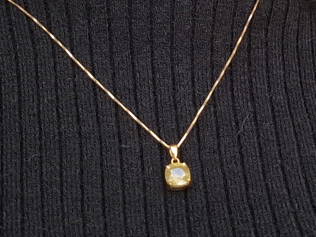 ペンダントトップが簡単に着脱できるピンスルーチェーンネックレスなので、オフィスではチェーンのみ、推し活ではペンダントトップをつけて楽しんでいます。