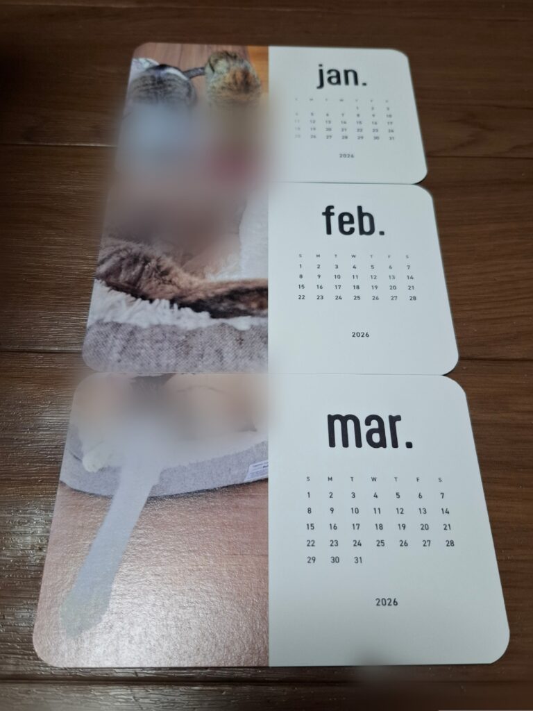 「このまま眠らせておくのはもったいないな」と思い、今回は愛猫たちの写真でカレンダーをつくってみました。