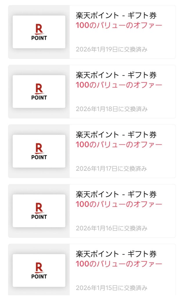 ※実際に私が毎日100ポイントずつ交換している履歴です。